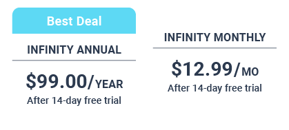 cancel at any time. Please note, when clicking 'sign up' on the Infinity page, you will be prompted to enter payment details. This is required, but you will not be charged until your free trial period ends.